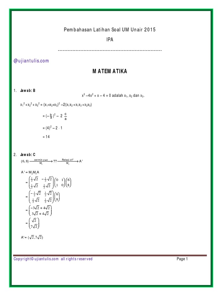 C 1 2 6 8 45 cermin y x Rotasi o M M. UM Unair 2015 Informasi Ujian Masuk Unair Tahun 2015 Universitas Airlangga soal Unair Kedokteran Unair Akreditasi Unair latihan soal UM Unair 2015. Eduexpo Unair 2019 Universitas Airlangga merupakan Perguruan Tinggi Negeri favorit bagi para siswa-siswi SMAMA SMK dan yang sederajat untuk melanjutkan studi.