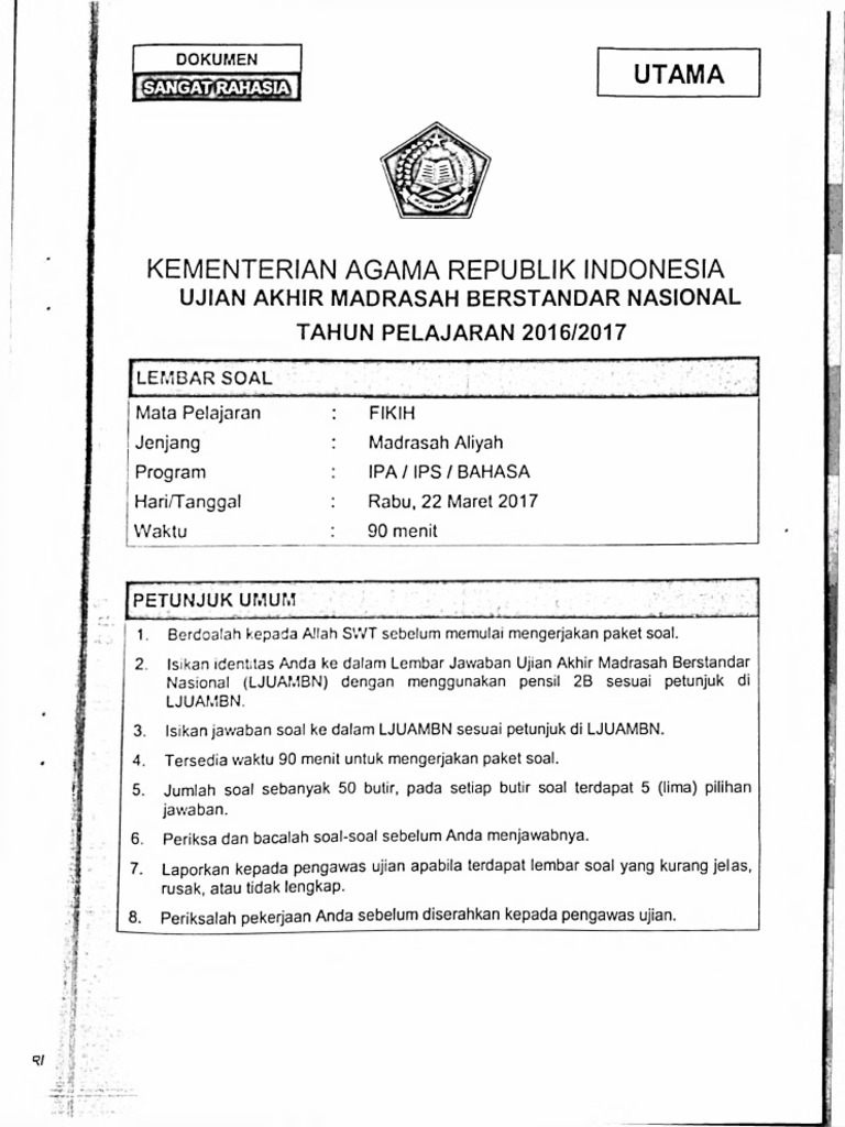 Manusa Kertajati Majalengka Kumpulan Soal Uambn Mata Pelajaran Fiqih Di Sertai Dengan Lembar Kunci Jawabannya Selamat Menikmati