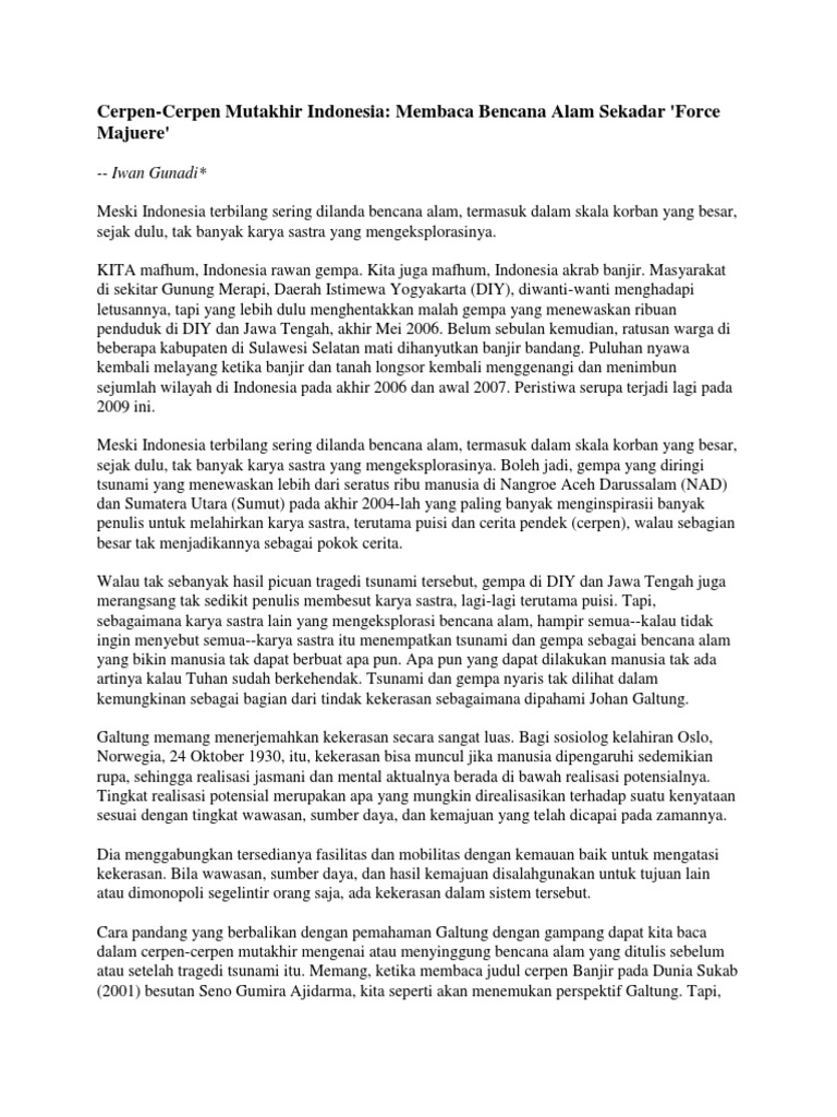 Paling tidak bila bencana alam kosmogenik sulit. Sore itu kota Tuban terasa lebih sejuk. Banjir Melanda Kampungku Cerpen Karangan.