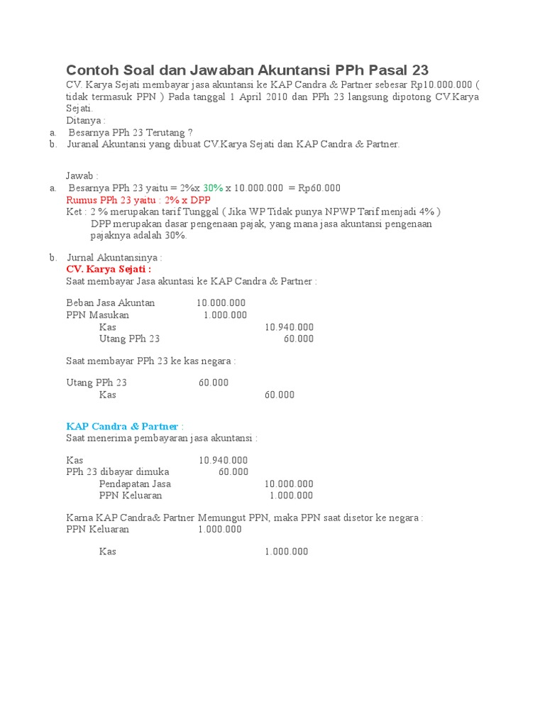 Contoh Soal Dan Jawaban Akuntansi Pph Pasal 23