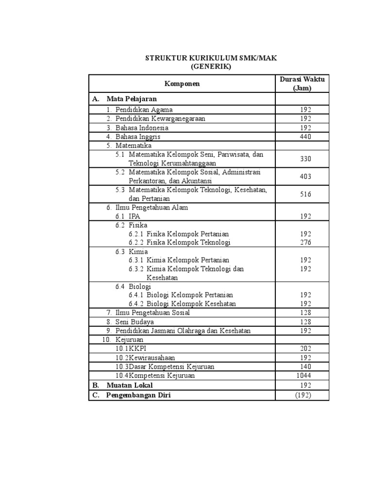 Struktur Kurikulum Tkj Ktsp 2006 Smk